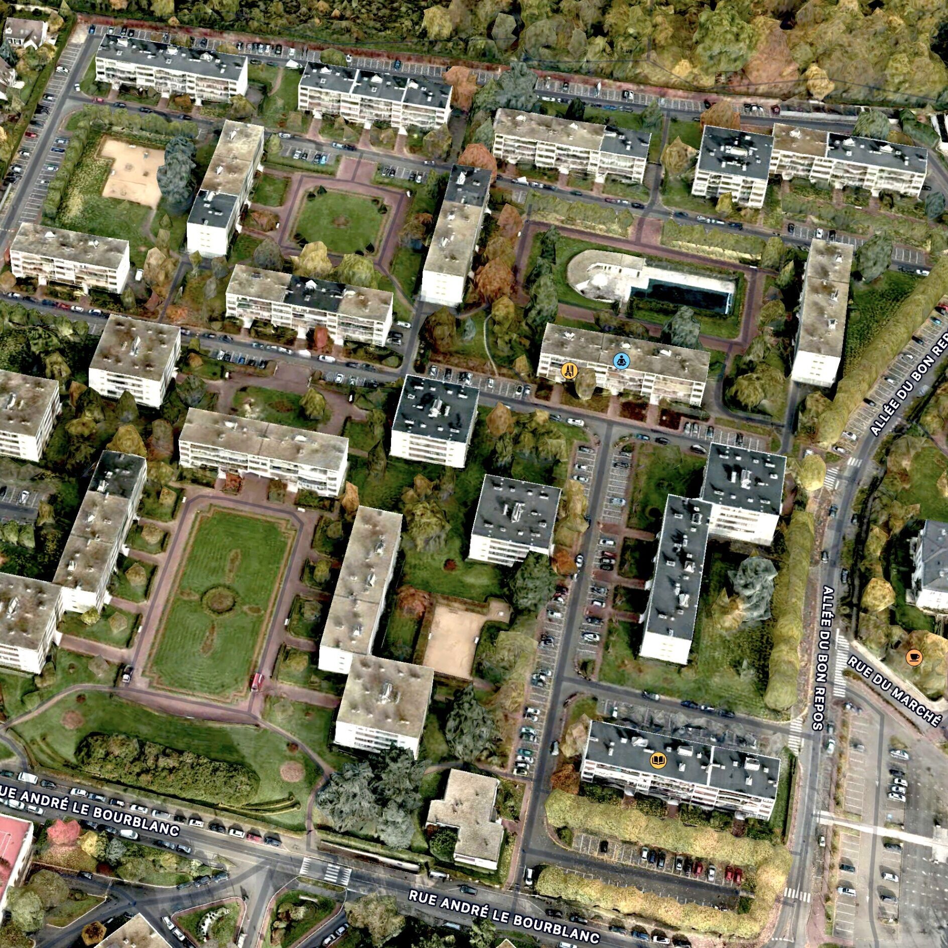 Ravalement en site occupé des façades d’une résidence, de 24 bâtiments, construite dans les années 60. Projet en collaboration avec le cabinet d’architecture et d’expertise Adyton.
