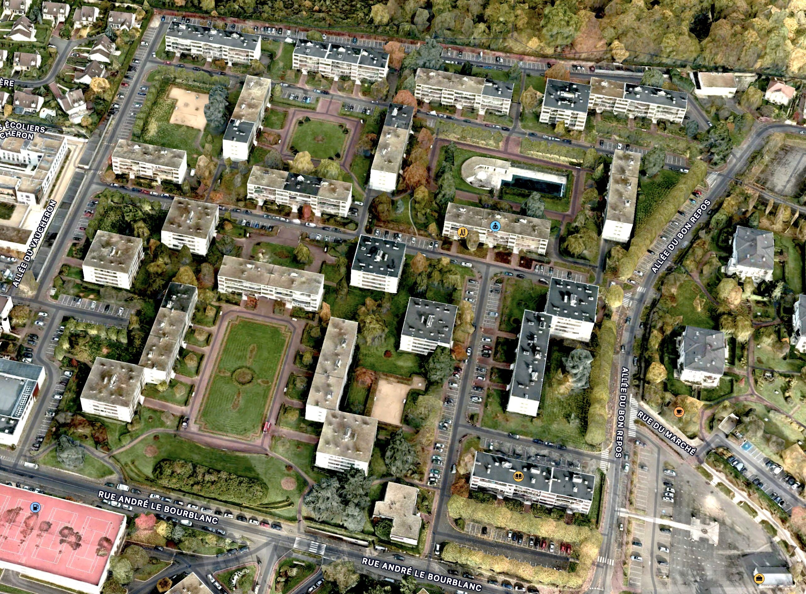 Ravalement en site occupé des façades d’une résidence, de 24 bâtiments, construite dans les années 60. Projet en collaboration avec le cabinet d’architecture et d’expertise Adyton.