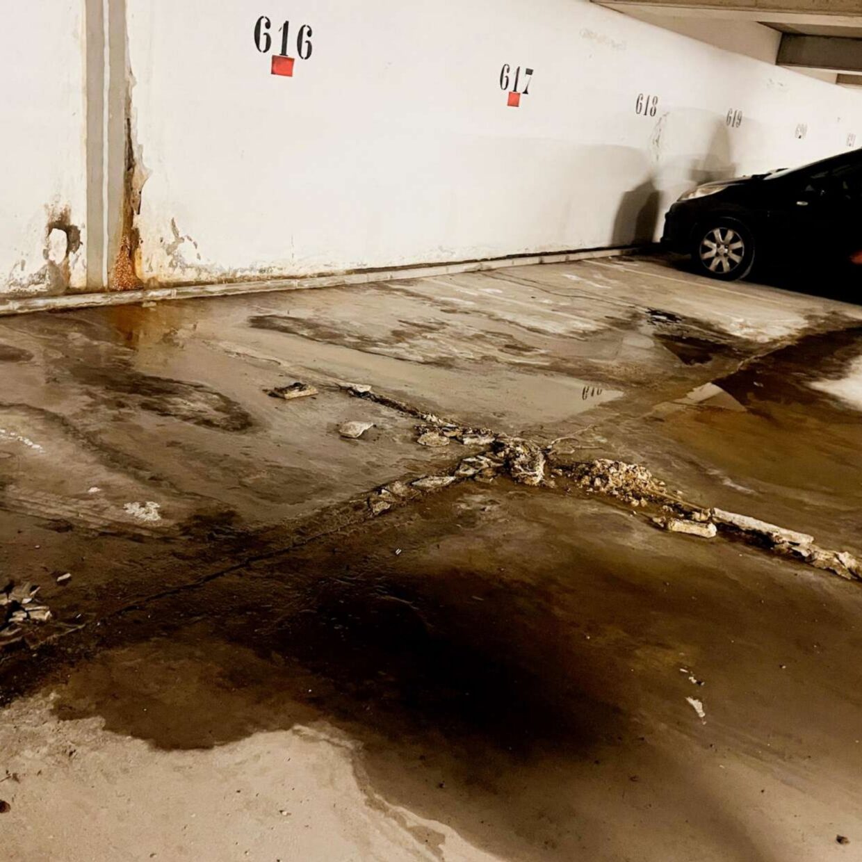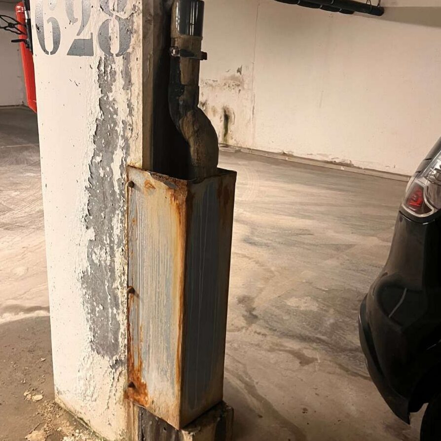 Renforcement du plancher bas du parking en sous-sol, réfection des joints de dilatation de la dalle, reprise des fissures et drainage des eaux, mise en œuvre d’une cristallisation toute hauteur et d’évents, puis mise en peinture et divers travaux embarqués comme ceux de chauffage (chaudière), en site occupé. Chantier par phase pour assurer les services essentiels aux occupants.
